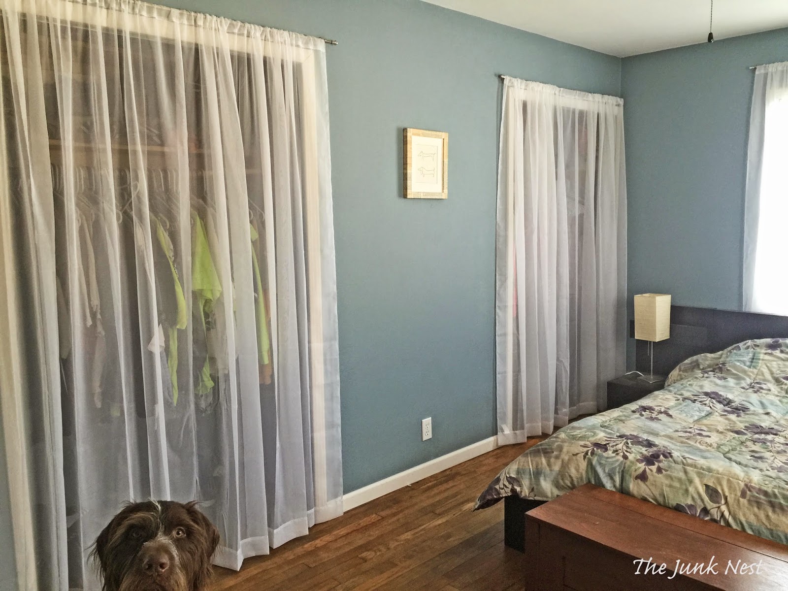 I've always loved the look of curtains on closets. So I went with the same curtains I used on the windows.